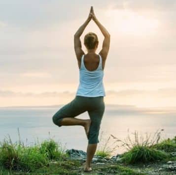 La tercera postura es la "Garudasana" o la posición de Garuda. Esta asana ejercita los músculos abdominales, lo cual fortalece el suelo pélvico y mejora la estabilidad general en la zona.